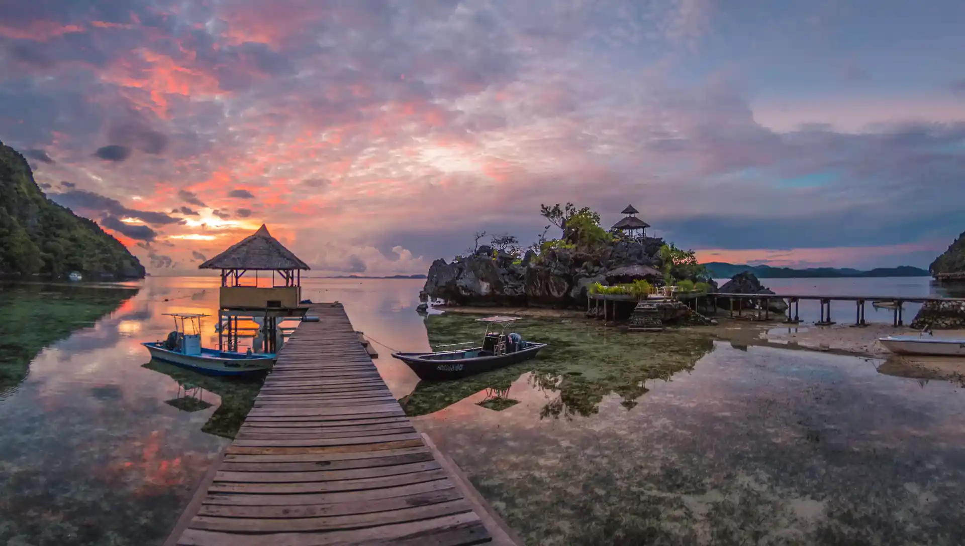 Sangat Island Dive Resort is set on a 300 meter stretch of pure white sand beachfront, surrounded by towering limestone cliffs and majestic coconut palms.