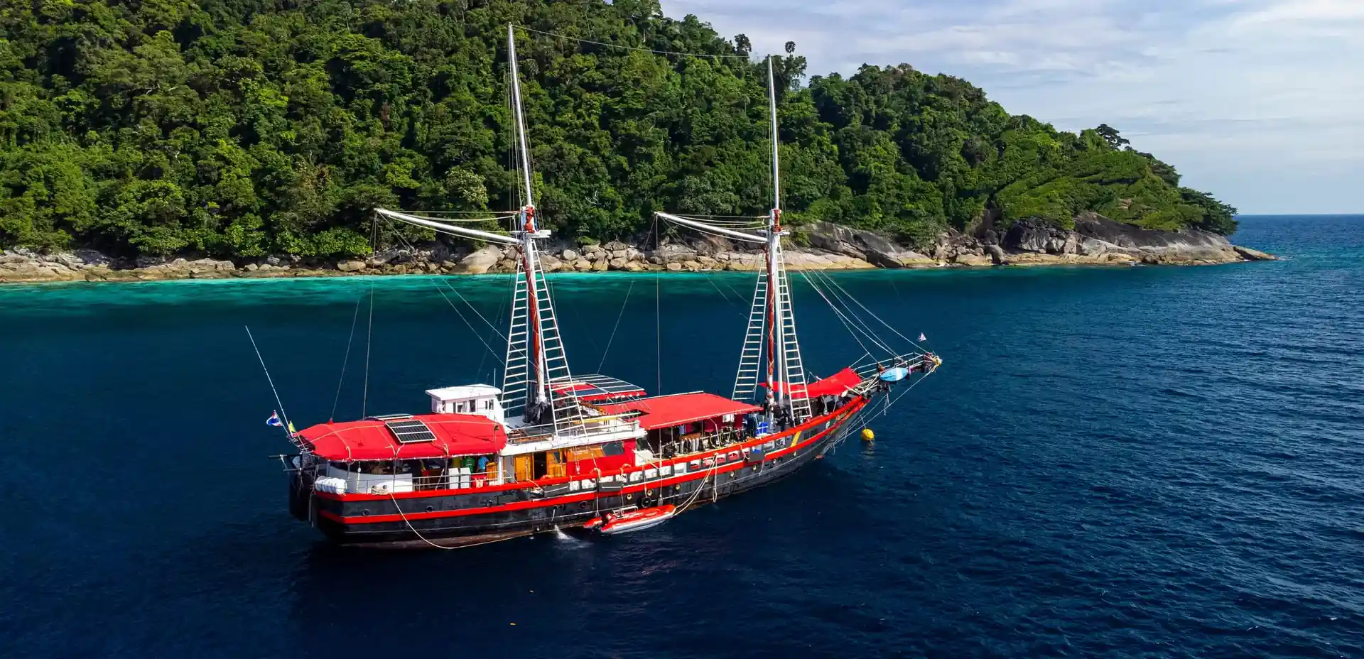The Thailand Master offers a timeless Indonesian sailing yacht experience, perfectly suited for liveaboard diving excursions in Thailand and Myanmar, providing a comfortable and enjoyable voyage for up to 18 divers.